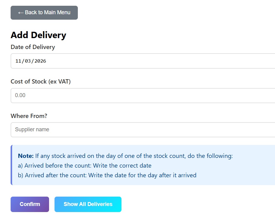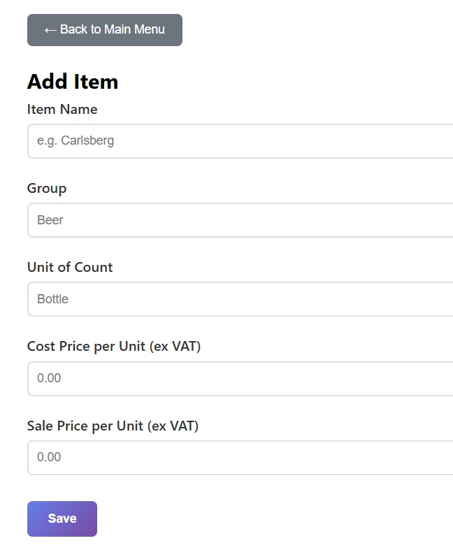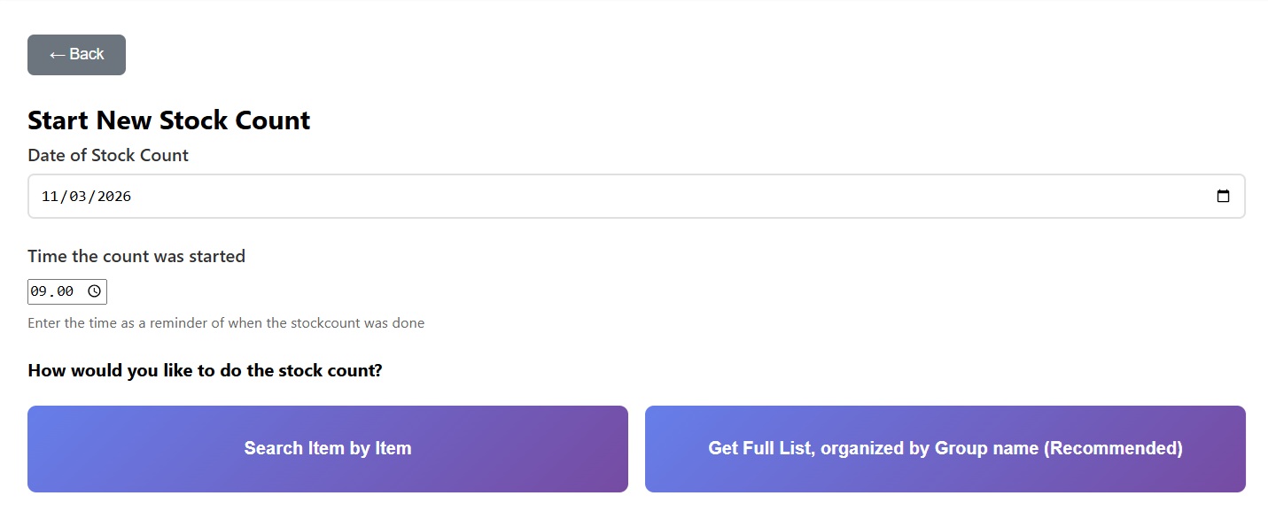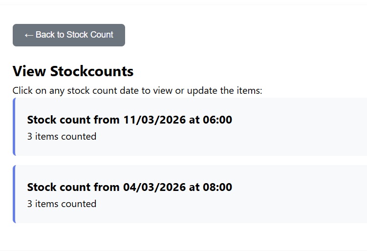 If you are doing your stock count via your mobile phone, here is the mobile view. It is often good to input your initial items via a laptop/PC, and then login via your phone and walk around to do the actual count.