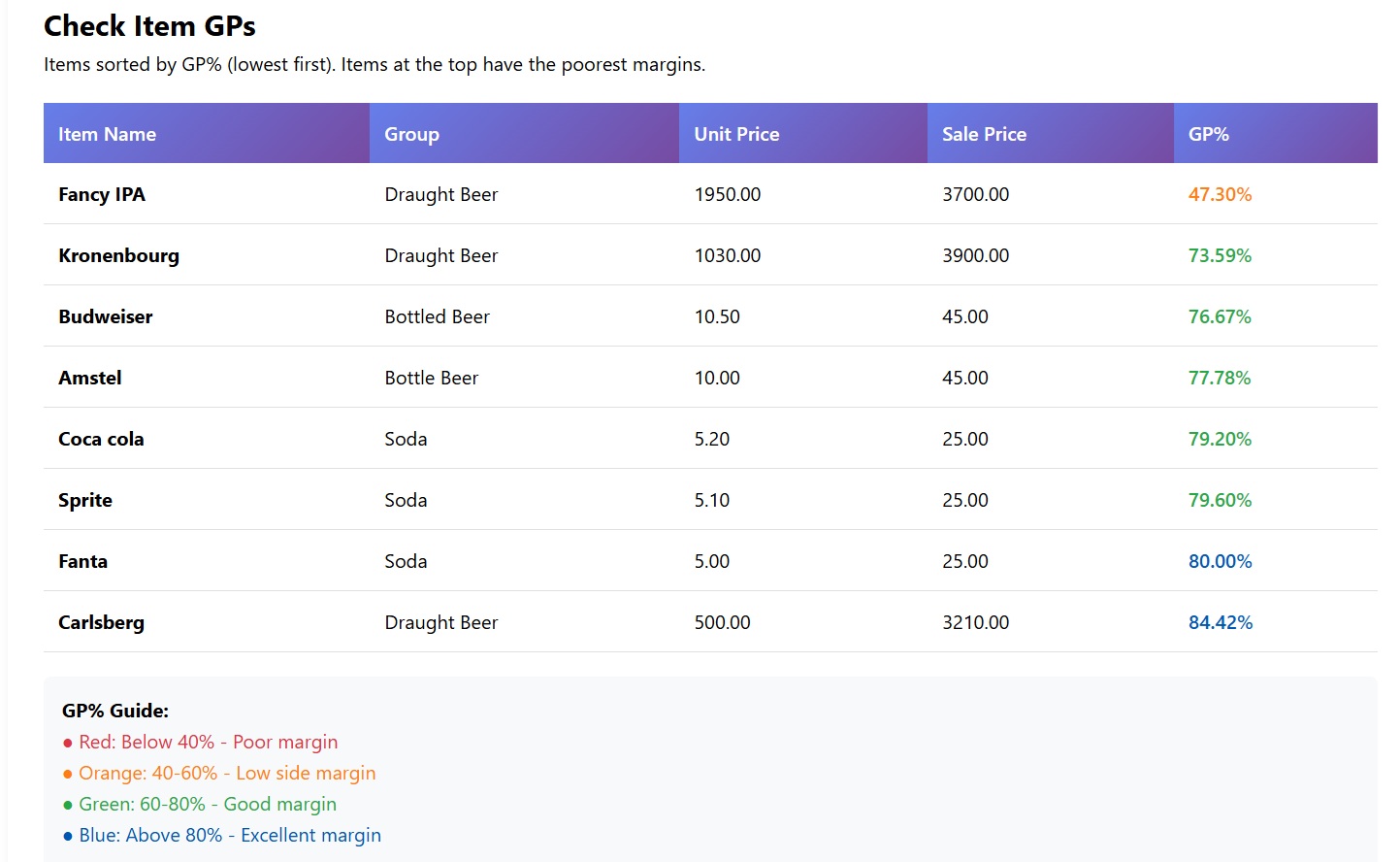 Simple Stock Control is easy-to-use stock control software which is suitable for small businesses. It will help you calculate your actual Gross Profit (GP), calculate your expected GP, and to highlight underpriced items, and problems relating to stock control.