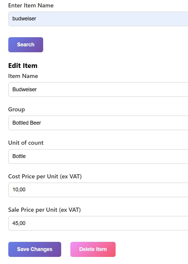 If you are doing your stock count via your mobile phone, here is the mobile view. It is often good to input your initial items via a laptop/PC, and then login via your phone and walk around to do the actual count.